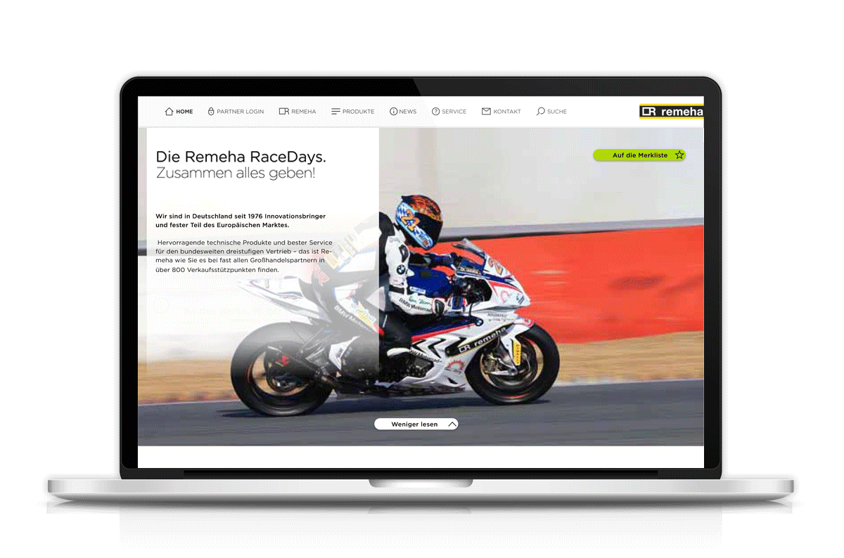 Der neue digitale Markenauftritt für Remeha bindet den Fachbereich geschickt in die öffentliche Unternehmensseite ein. Erst für den User, der sich über das Login als Facharbeiter erkenntlich zeigt, wird zusätzlicher Content in allen Bereiche eingestreut der sonst verborgen bleibt. So fällt für das Unternehmen nur eine Seitenpflege an und die URL Matrix ist leichter zu händeln. Weiter neue tools wie die persönliche, editierbare Favoritenliste als Schnelleinstieg in den Facharbeitercontent sind von RAYNA entwickelt worden. Diese sorgen für effizienteres und schnelleres Arbeiten und eine bessere Kundenbetreuung und Service Leistungen.